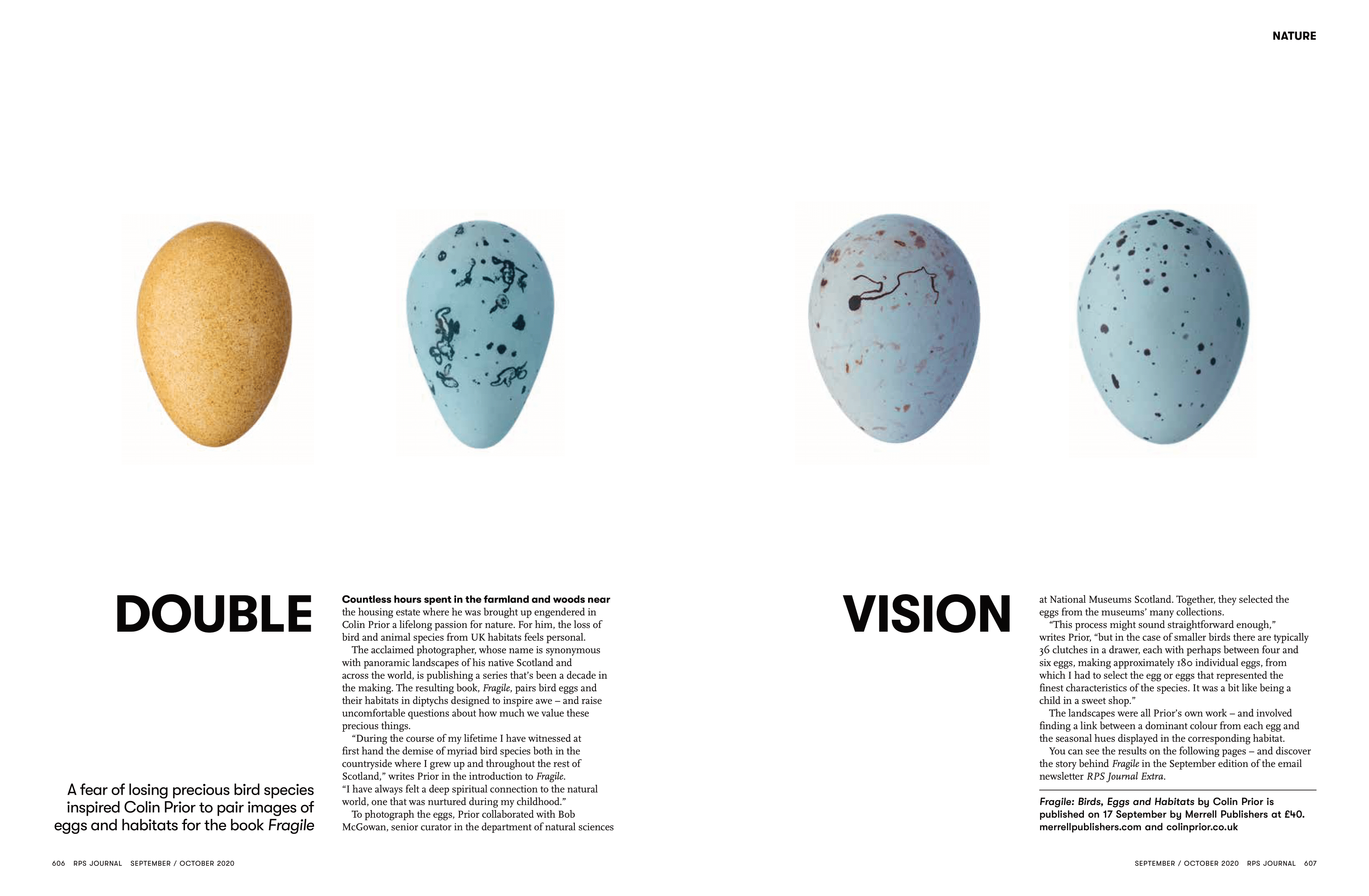 Countless hours spent in the farmland and woods near the housing estate where he was brought up engendered in Colin Prior a lifelong passion for nature. For him, the loss of bird and animal species from UK habitats feels personal. The acclaimed photographer, whose name is synonymous with panoramic landscapes of his native Scotland and across the world, is publishing a series that’s been a decade in the making. The resulting book, Fragile, pairs bird eggs and their habitats in diptychs designed to inspire awe – and raise uncomfortable questions about how much we value these precious things. “During the course of my lifetime I have witnessed at first hand the demise of myriad bird species both in the countryside where I grew up and throughout the rest of Scotland,” writes Prior in the introduction to Fragile. “I have always felt a deep spiritual connection to the natural world, one that was nurtured during my childhood.” To photograph the eggs, Prior collaborated with Bob McGowan, senior curator in the department of natural sciences...