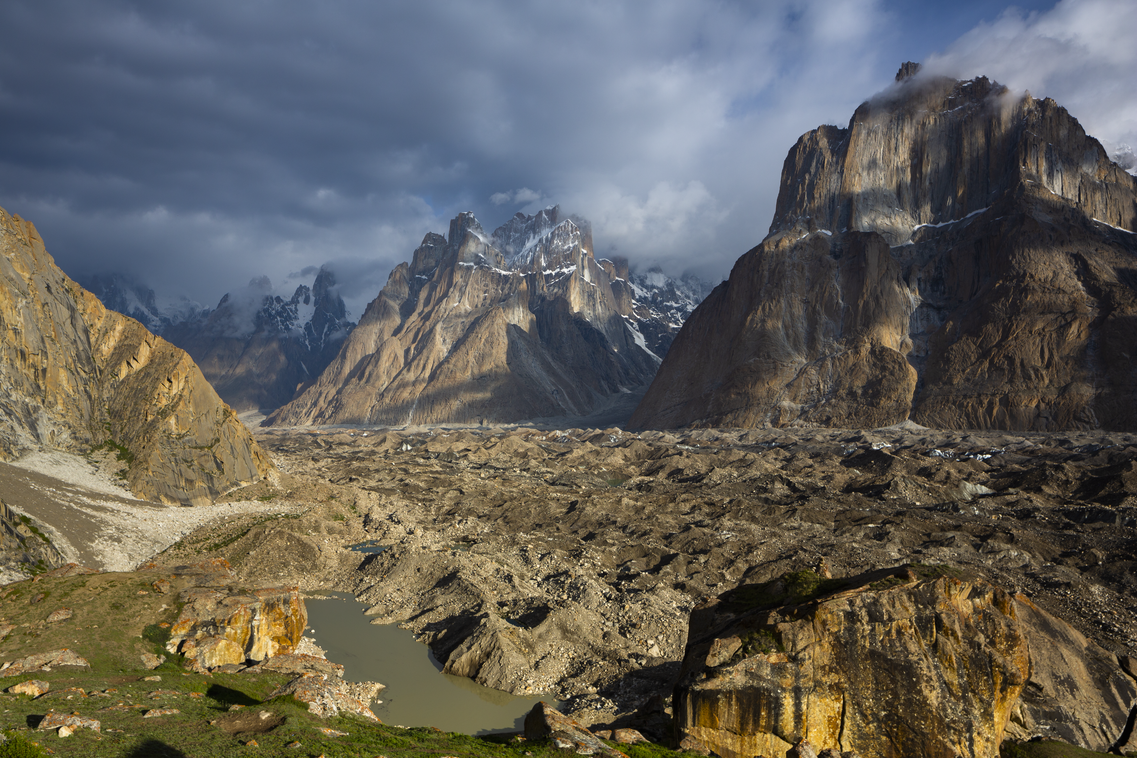 It was neither the lure of the Karakoram’s 8000 m peaks, nor that it contains the greatest concentration of glaciers outside of the polar regions, which captured my imagination but for the opportunity to explore this vertical landscape of shape and form. My dream of photographing this region never dimmed but glowed like an ember in a good flow of oxygen, however with it came the realisation that if I was ever going to turn my dream into a reality, I would need to attract corporate sponsorship. In 2012, I prepared a proposal document, which I sent out to the marketplace and by the end of the year, I had successfully secured financial support from three brands, for a four-year period. This would allow me sufficient time to create the depth of work I envisaged for a book and in 2013, having made two previous expeditions to the region, I set off for Pakistan’s Baltoro Glacier accompanied with a BBC film crew and 50 porters.