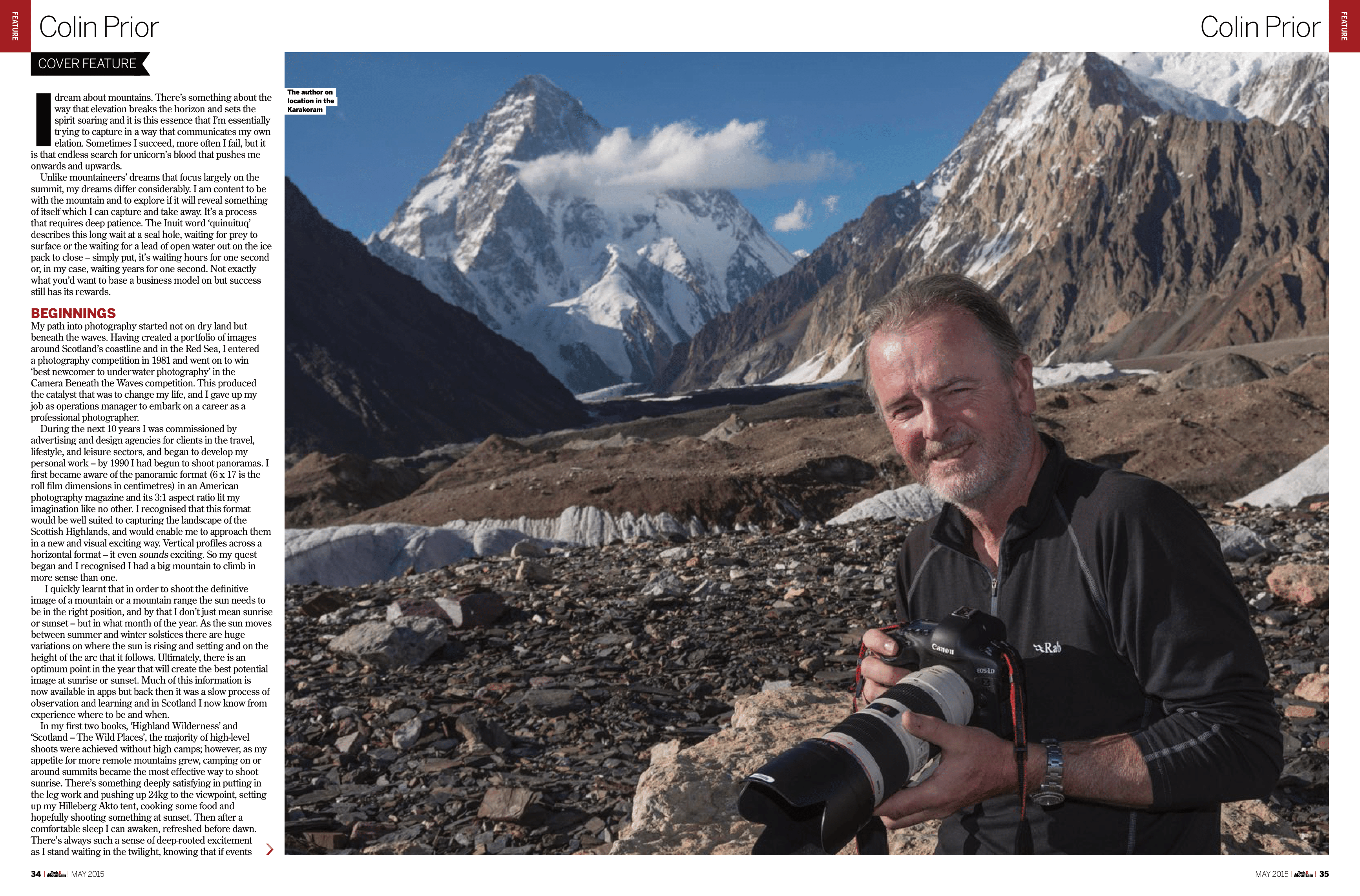 I dream about mountains. There’s something about the way that elevation breaks the horizon and sets the spirit soaring and it is this essence that I’m essentially trying to capture in a way that communicates my own elation. Sometimes I succeed, more often I fail, but it is that endless search for unicorn’s blood that pushes me onwards and upwards. Unlike mountaineers’ dreams that focus largely on the summit, my dreams differ considerably. I am content to be with the mountain and to explore if it will reveal something of itself which I can capture and take away. It’s a process that requires deep patience. The Inuit word ‘quinuituq’ describes this long wait at a seal hole, waiting for prey to surface or the waiting for a lead of open water out on the ice pack to close – simply put, it’s waiting hours for one second or, in my case, waiting years for one second. Not exactly what you’d want to base a business model on but success still has its rewards.